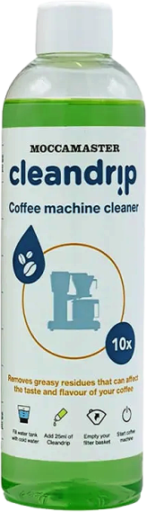 Moccamaster Cleandrip ist das empfohlene Flüssig-Reinigungsmittel für Moccamaster-Filtermaschinen und ähnliche Geräte. Es löst Kaffeeöle, braune Beläge und Geschmacksreste im Wassertank und in den Leitungen – schonend, ohne das Material anzugreifen. Einfach 25 ml mit Wasser einfüllen, Brühvorgang starten, nachspülen. Hinweis: kein Entkalker.