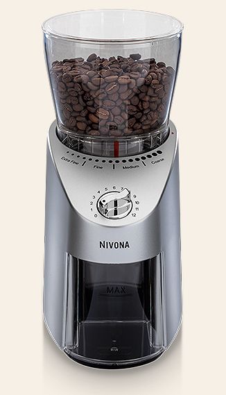 - Präzise Mahlgradeinstellung, dank des drehbaren Bohnenbehälters lässt sich der Mahlgrad mit nur einem Dreh stufenlos einstellen.